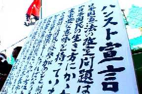 こんなことをやりながら、午後小集会を持って、互いを鼓舞し合いしつつ、合間合間にチラシを撒いたりしながら、ハンストと座り込みを続けて行きました。